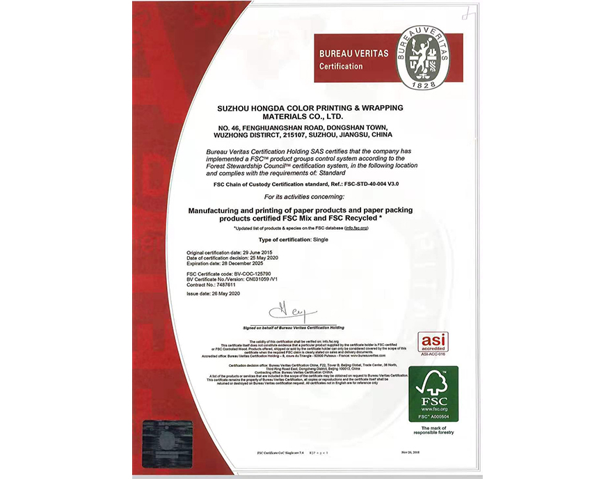 森林體系認(rèn)證證書