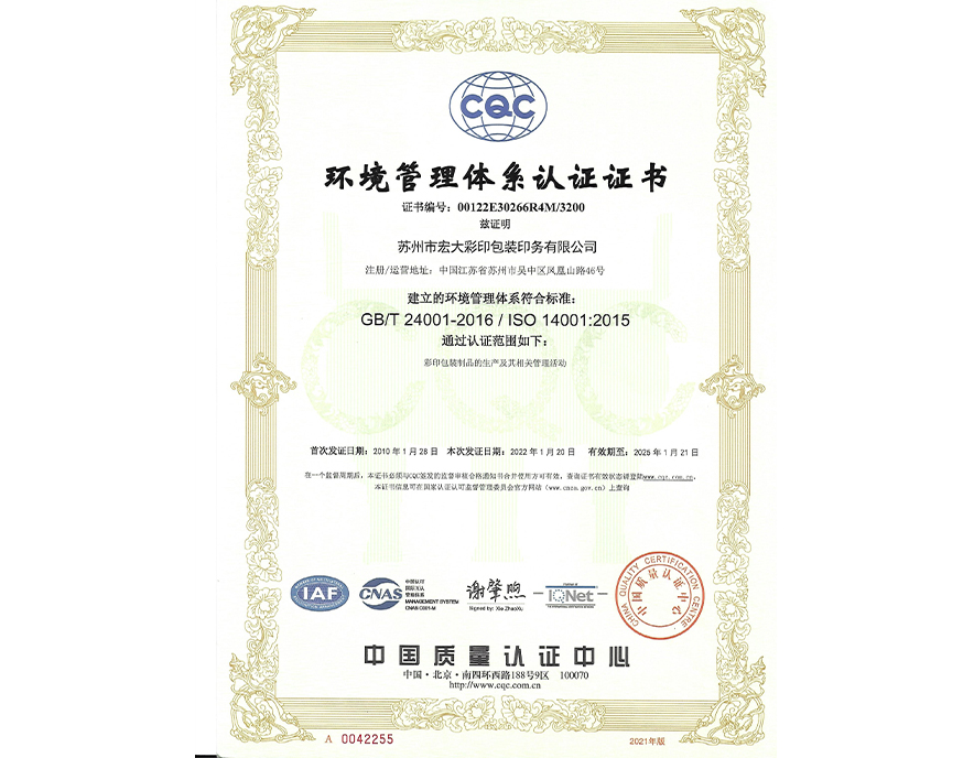 環境(jing)管理體系認證(zheng)證書